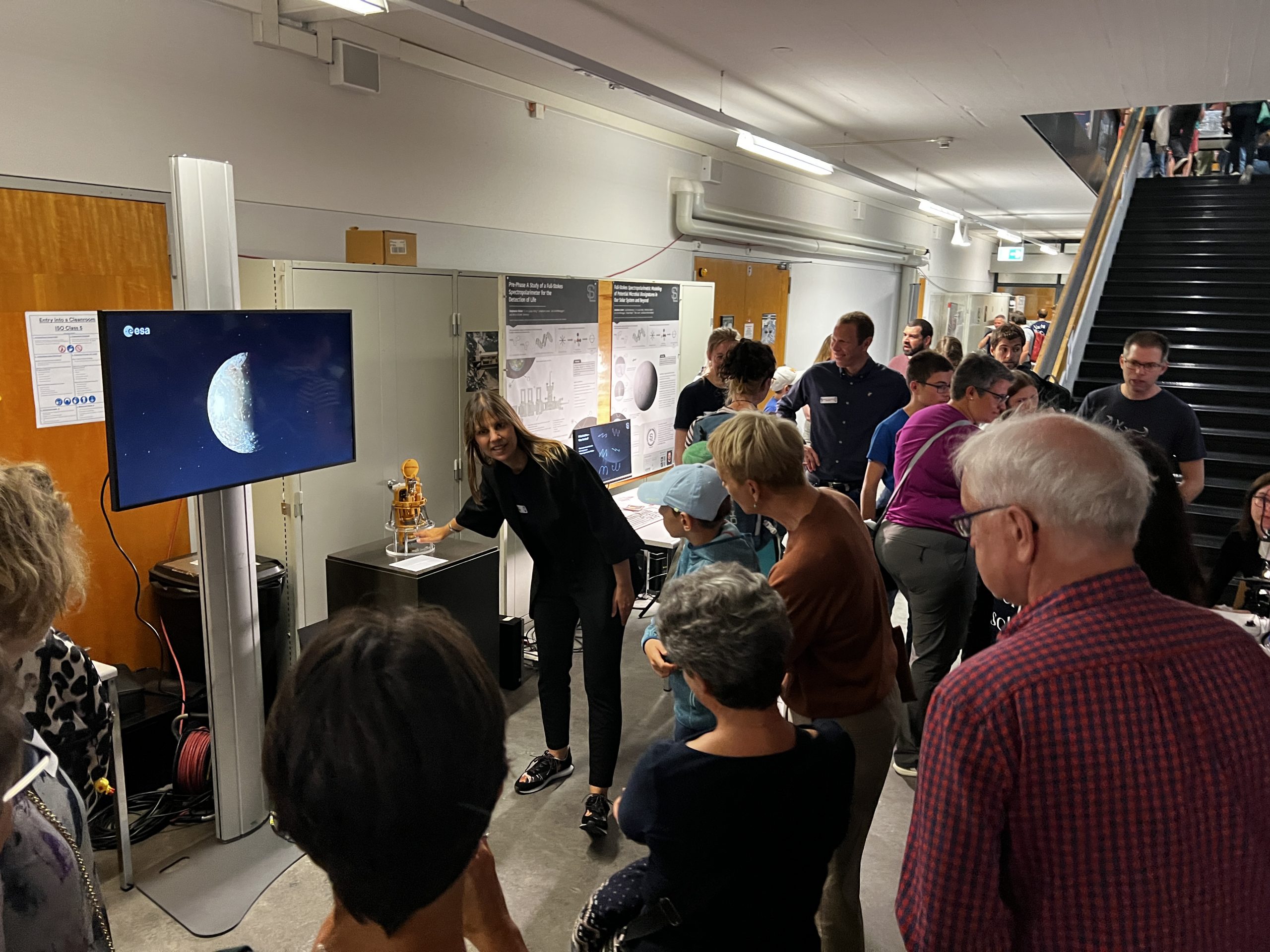 The first floor was all about two ESA space missions with Bernese participation. One focus was on the BepiColombo mission, which will arrive at the planet Mercury next year. The University of Bern is involved with the two instruments BELA and STROFIO, various components of which were on display.