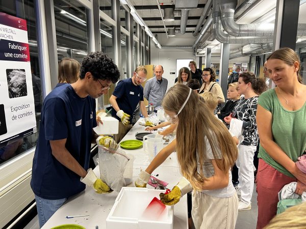 At the top of the building, everything revolved around comets. The fascination was palpable during the presentation of the planned Comet Interceptor mission, which will investigate a previously unexplored comet in 2029 – using two instruments from Bern, among other things. During ‘comet cooking’, guests young and old were able to make their own comets from dry ice and other ingredients. And those who dared could smell the comet scent – an experience that not everyone found pleasant, but which made them smile all the more.