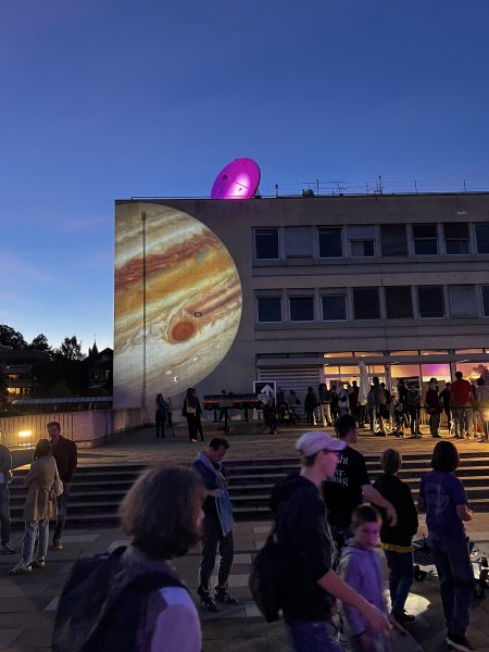The grand finale was an impressive video projection onto the façade of the Exact Sciences building. It combined spectacular images from space with fascinating insights into climate research, mathematics and high-energy physics – a visual highlight and a fitting end to this extraordinary evening.